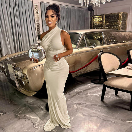 Elegant One-Shoulder Bodycon Maxi Dress – Asymmetric Ruched Formal Gown