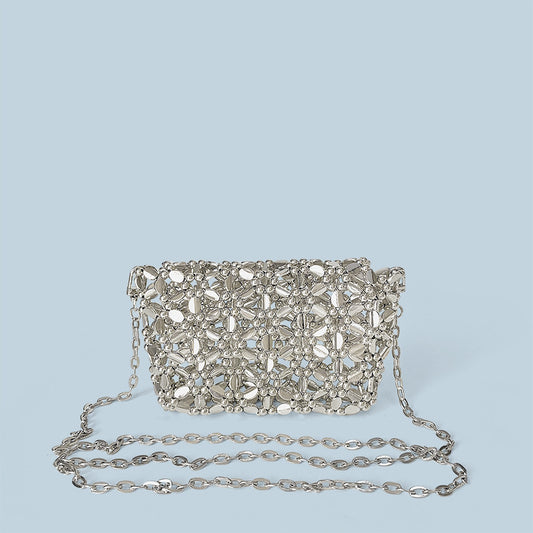 Light Luxury Beaded Cocktail Square Bag – Elegant Flip Ring Handbag