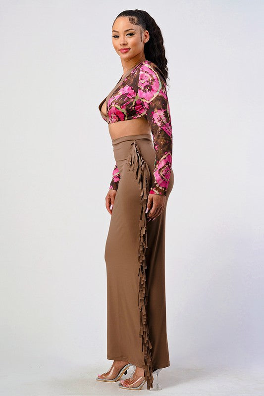 Floral Rhinestone Bandage Two Piece Set: Sexy Tube Top & High-Waist Long Skirt