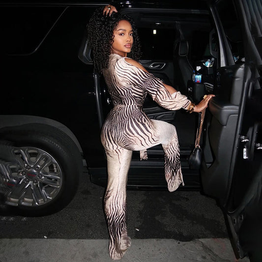 Lace Suspender Jumpsuit - Animal Print V-Neck Romper