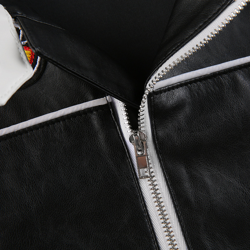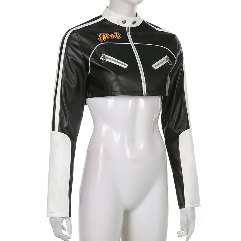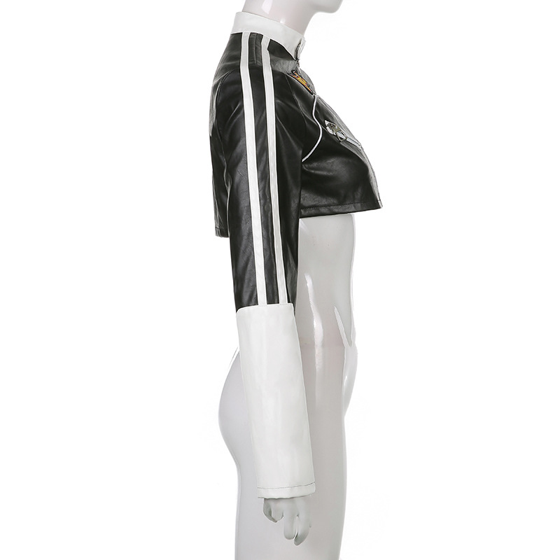 Make a bold statement with this hipster-cool mecha faux leather jacket. Designed with a loose fit, this cropped coat features a unique color-matching graphic and a practical zipper closure. The long sleeves and durable polyester fabric make it a perfect choice for adding an edgy touch to your spring or fall outfits.
