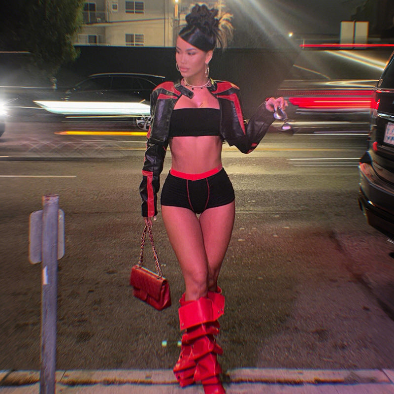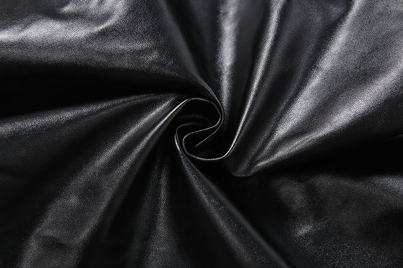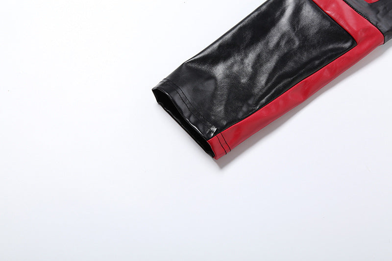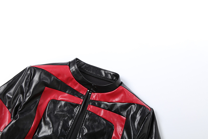 This women’s cropped leather jacket combines edgy style with a sleek, modern fit, perfect for spring and fall wear. Crafted from polyester faux leather, the jacket features a slim fit, crop length, and zipper closure for easy wear. The color block design with patchwork details adds a standout, fashion-forward element, ideal for motorcycle-inspired looks or casual outings.
