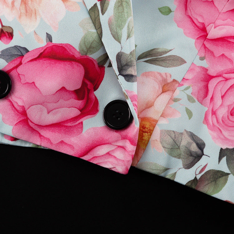 This women’s two piece skirt set features an elegant, office-ready design suitable for spring and fall wear. Crafted from lightweight polyester fabric, the set includes a loose-fit collared top with long sleeves, button and tie details, paired with a short skirt featuring a regular-rise waist and subtle split for ease of movement. The floral digital print adds a polished yet feminine touch.