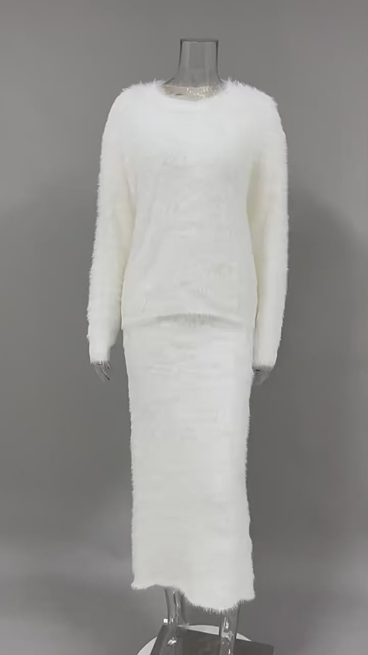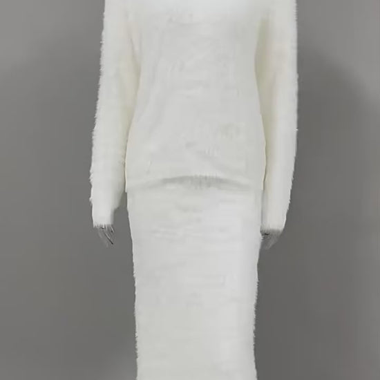 Elevate your fall and winter wardrobe with this Elegant Knitted Sweater Skirt Set. Crafted from a soft nylon blend, the cozy crew-neck sweater pairs effortlessly with a high-rise maxi skirt, offering a flattering loose fit for all-day comfort. Its timeless design and solid color make it versatile for both casual and refined looks, ensuring you stay warm and stylish with ease.