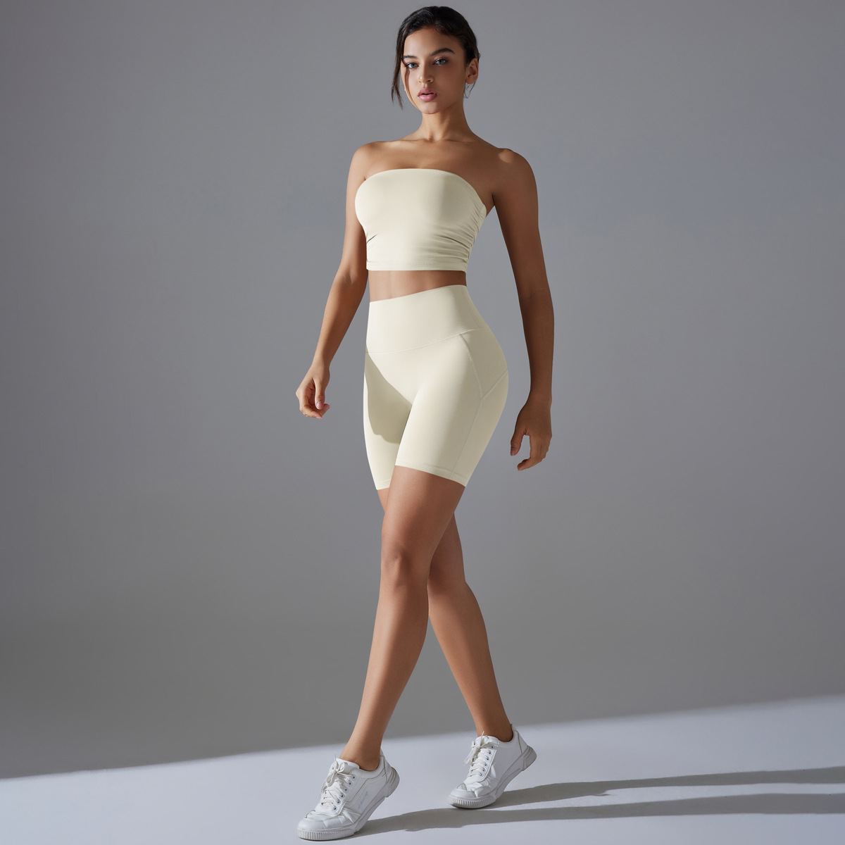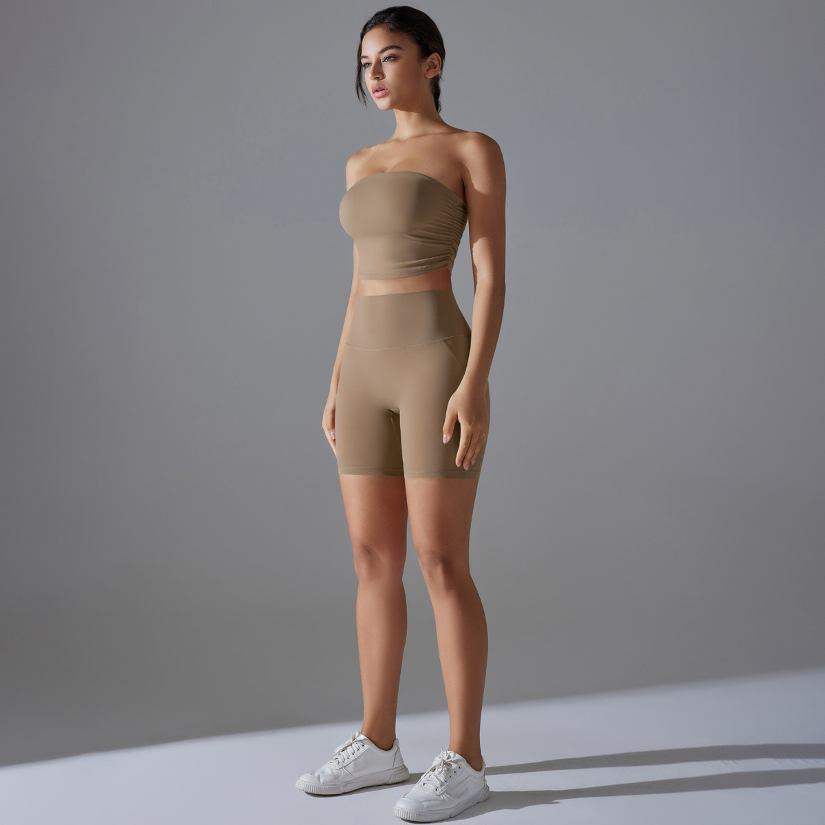 Elevate your fitness game with our Celebrity Inspired One Piece Pleated Tube Top High Waist Yoga Set. Made from comfortable nylon, this sporty set features a pleated tube top and high-waisted design for a flattering fit. With sleeveless top and short bottoms, enjoy unrestricted movement during workouts and yoga. Style, function, and fashion all in one!