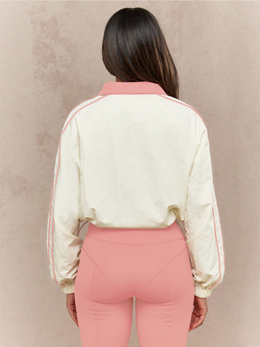 Women’s Color Block Nylon Two-Piece Set – Zip-Up Top and High-Waist Yoga Pants