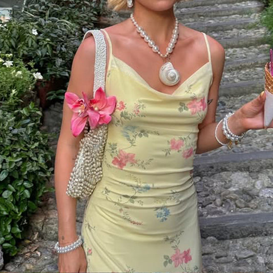 Floral Mesh Maxi Dress - Cowl Neck Cami Dress