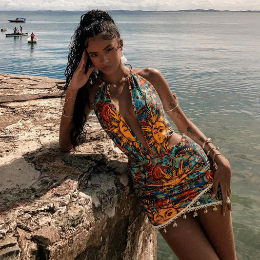Halter Backless Mini Dress - Deep V Plunge Neck Party Dress