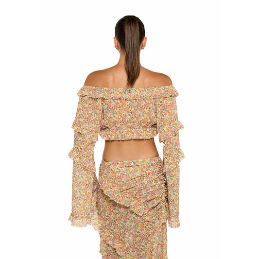 Floral Chiffon Beach Cover-Up Set - Long Sleeve Maxi Skirt