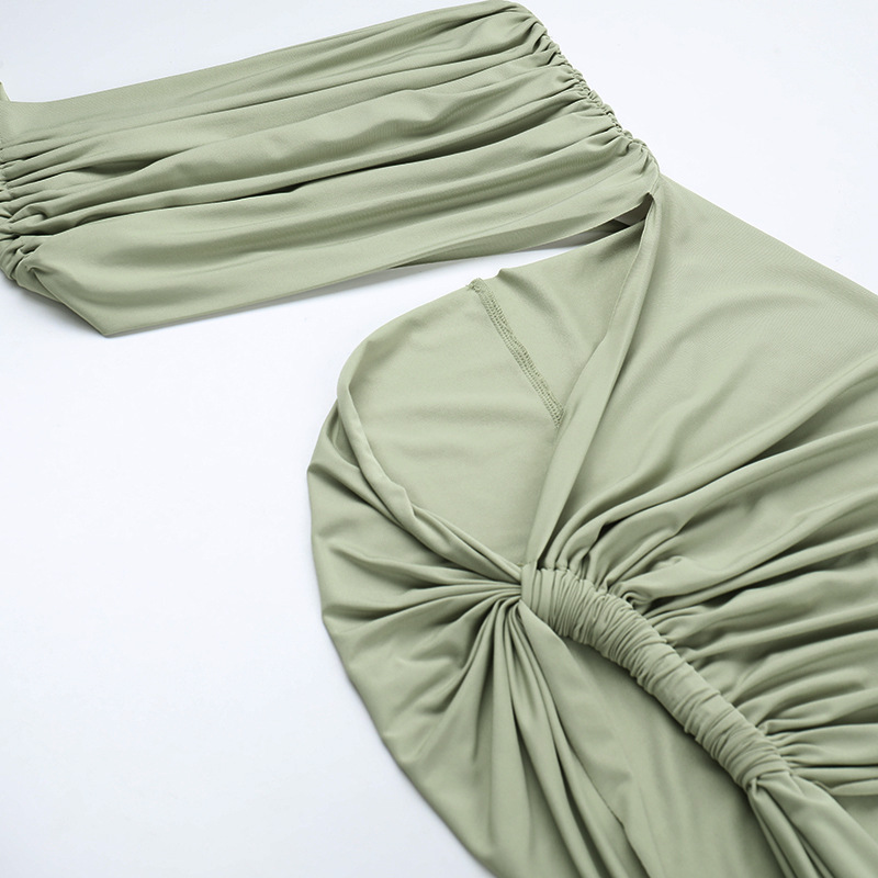 Sexy One-Shoulder Mesh Ribbon Maxi Dress – Asymmetric Ruched Design