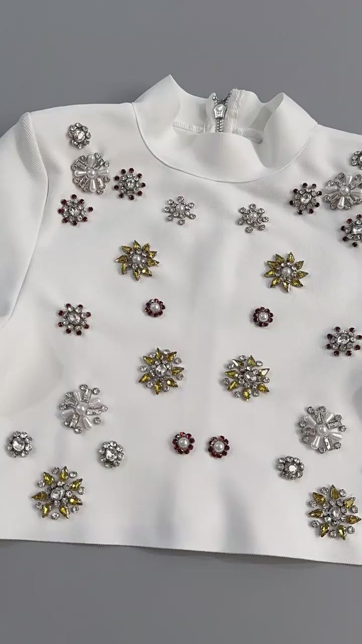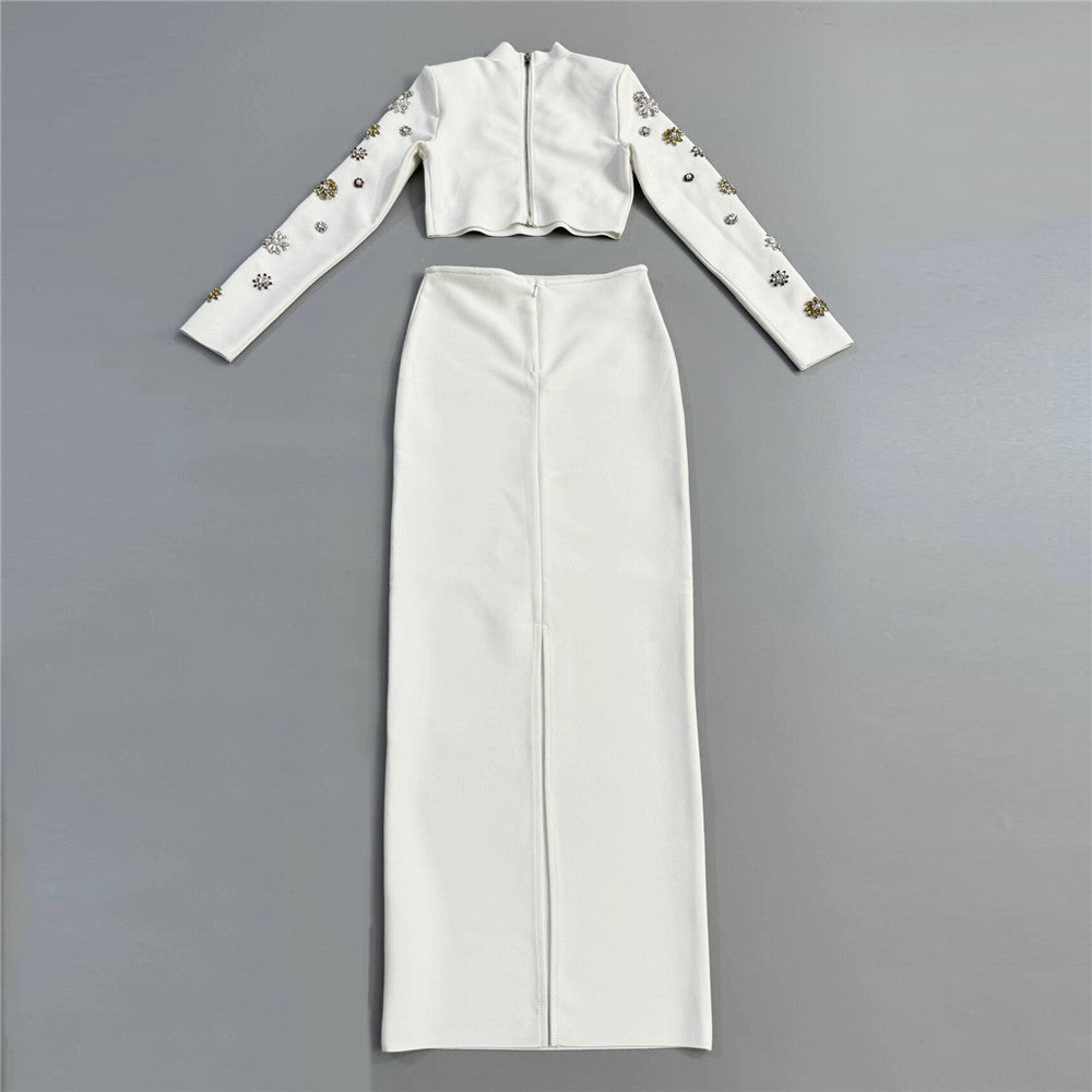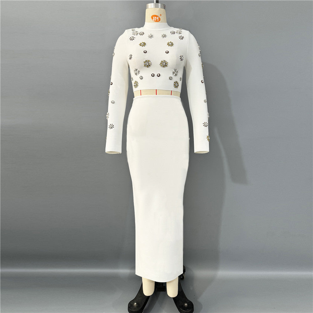 Elegant Rhinestone Crop Top & Maxi Skirt Set