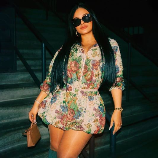 Floral Rhinestone Bandage Two Piece Set: Sexy Tube Top & High-Waist Long Skirt