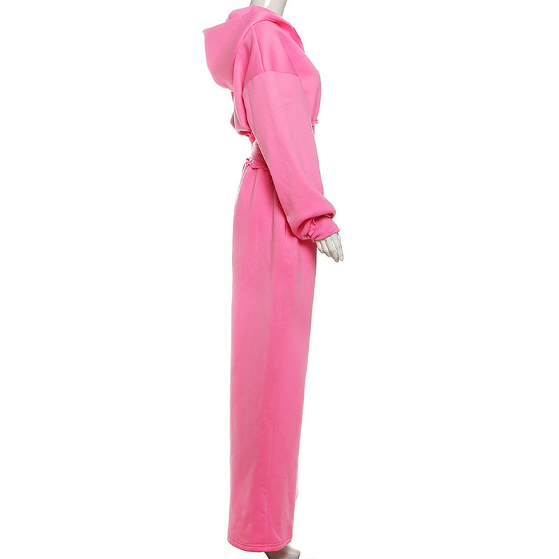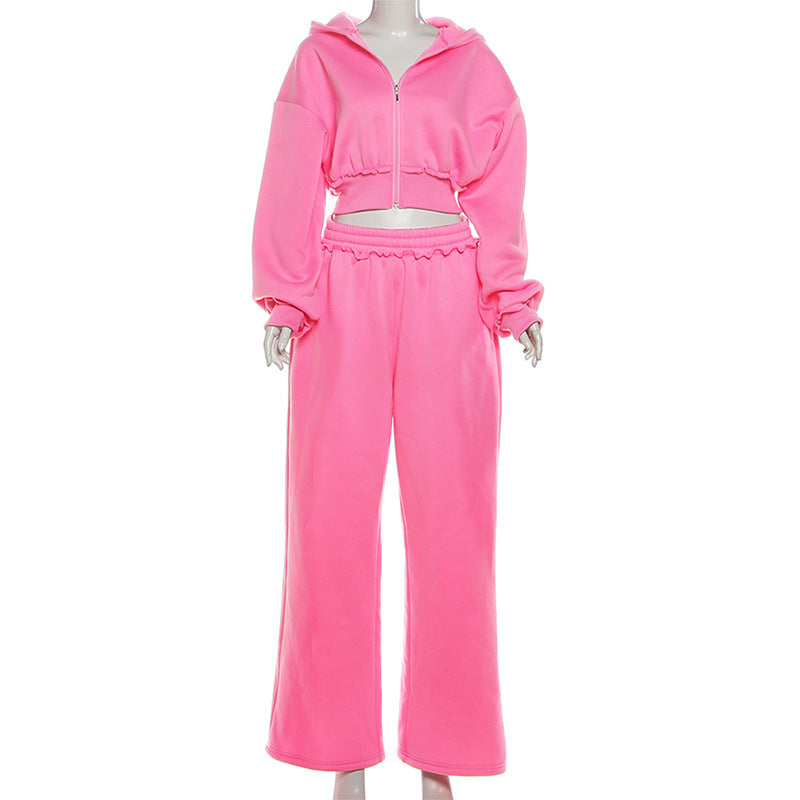 🍂 Nova Hooded Crop Jacket & Wide-Leg Pant Set