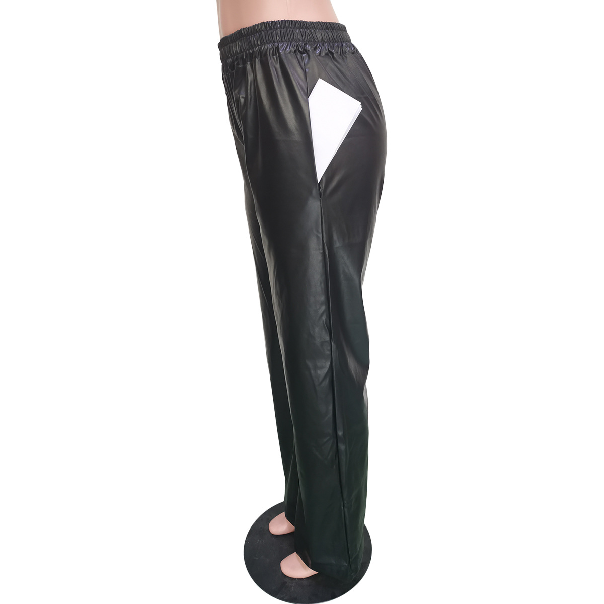 Loose Wrap Wide Leg Pocket Faux Leather Pants
