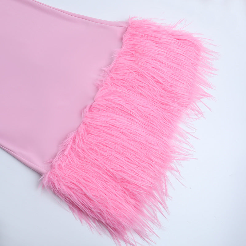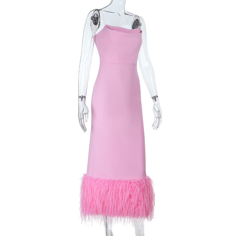 Turn heads effortlessly with this Elegant Feather-Trimmed Maxi Dress. Featuring a strapless, body-hugging silhouette and a bold thigh-high slit, it combines sophistication with a daring edge. The unique feather patchwork adds an exclusive touch of glamour, while the soft polyester blend ensures comfort all day or night. Perfect for any formal event, this seasonless dress guarantees a show-stopping entrance wherever you go.