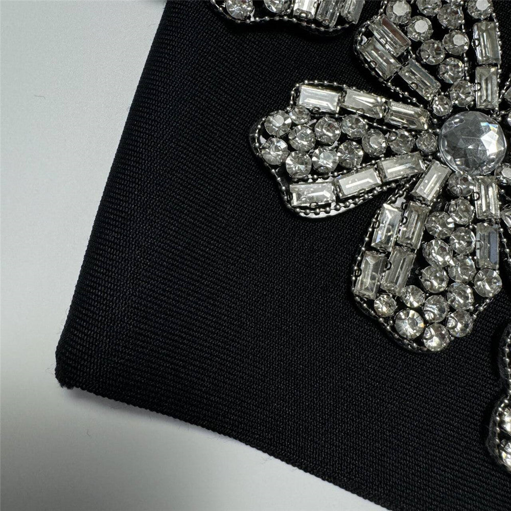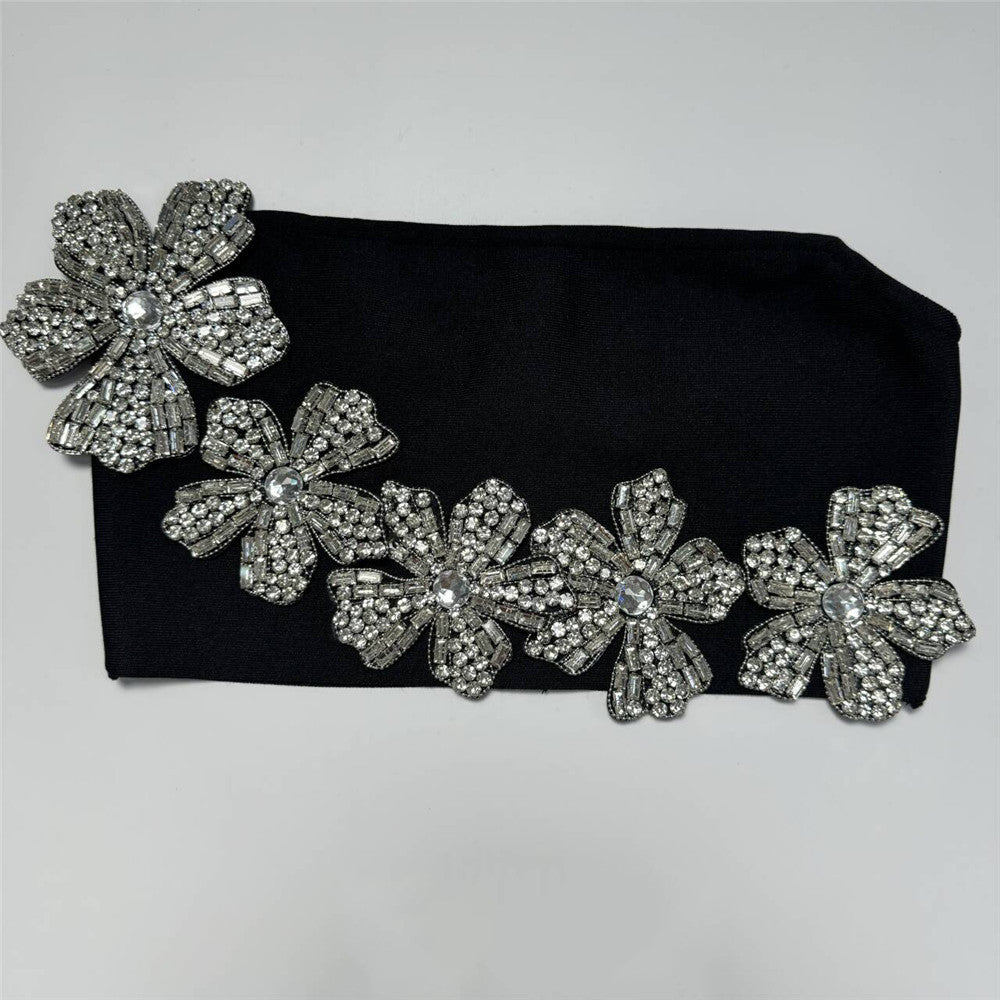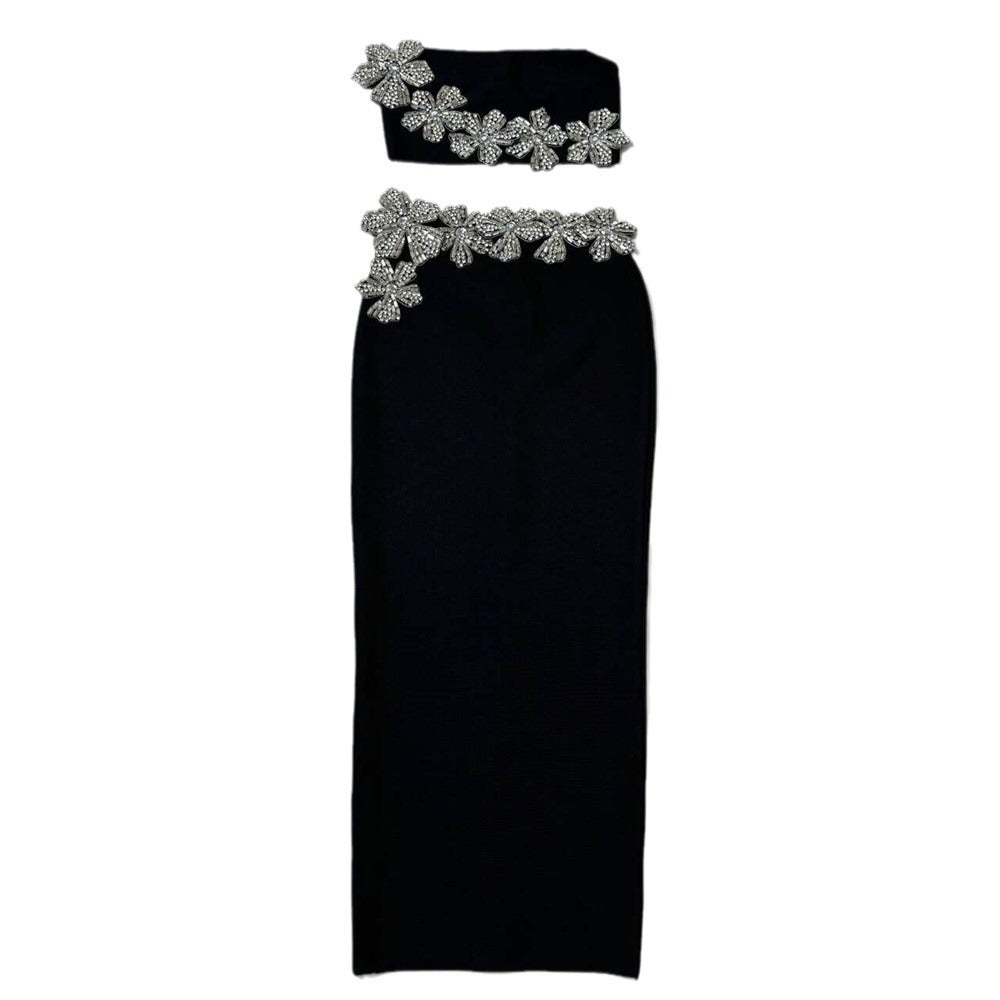 Floral Rhinestone Bandage Two Piece Set: Sexy Tube Top & High-Waist Long Skirt