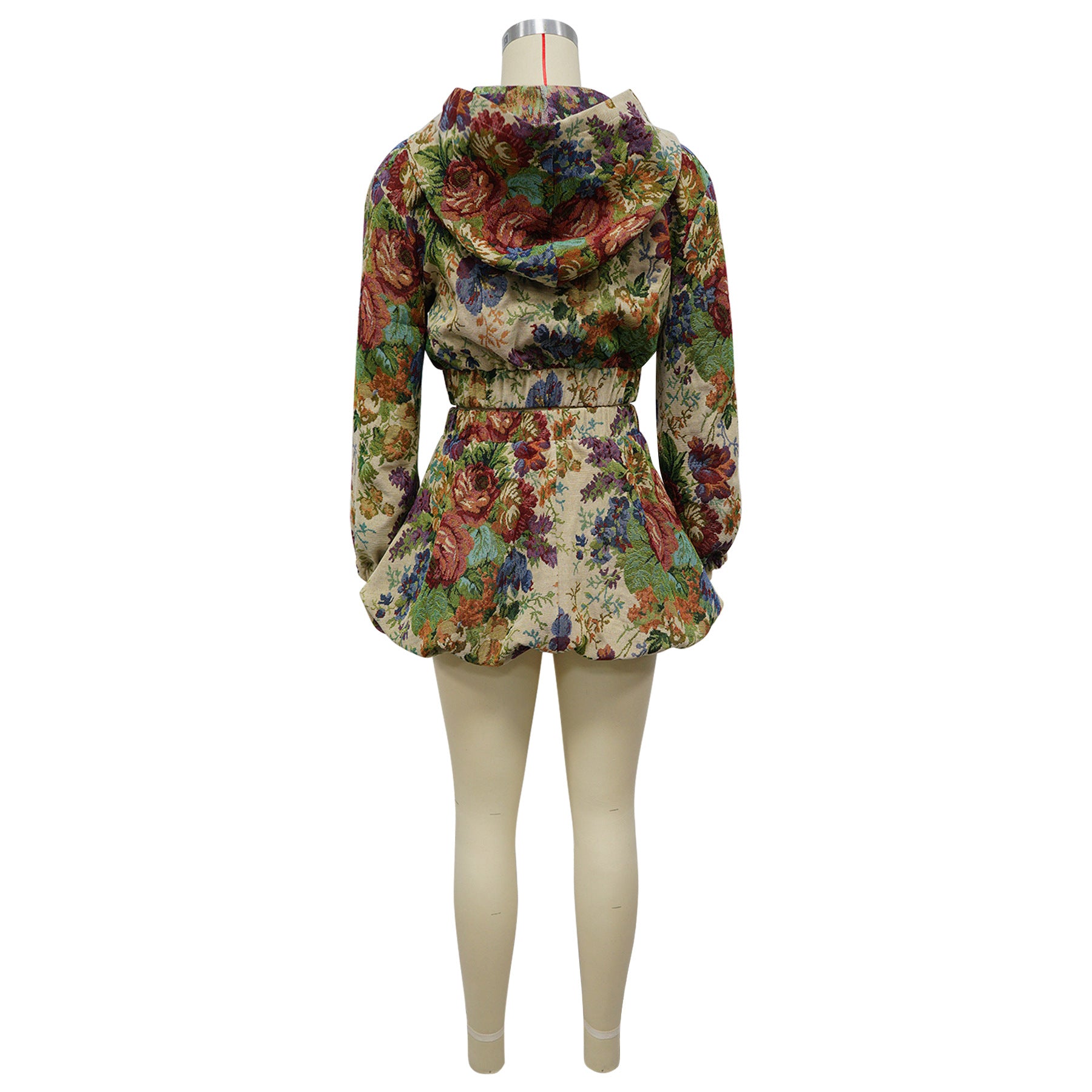 Elevate your wardrobe with this elegant jacquard two-piece skirt set, featuring a long-sleeve hooded top with a sleek zipper and a high-rise bodycon mini skirt. Crafted from smooth polyester with a refined floral pattern, this ensemble offers a flattering regular fit for both comfort and style. Perfect for spring and fall, the short lengths and classic design make it a versatile choice for sophisticated days and evenings alike. Add a touch of graceful charm to your collection with this polished and timeless set.
