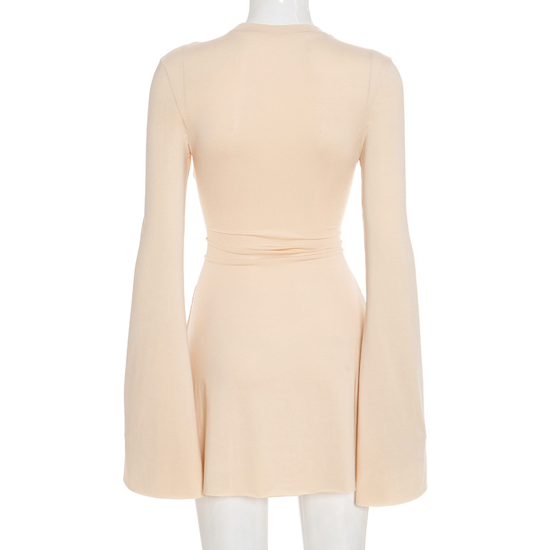 Women’s Solid Color Long Sleeve A-Line Dress – Slim Flared Short Dress for Autumn and Fall
