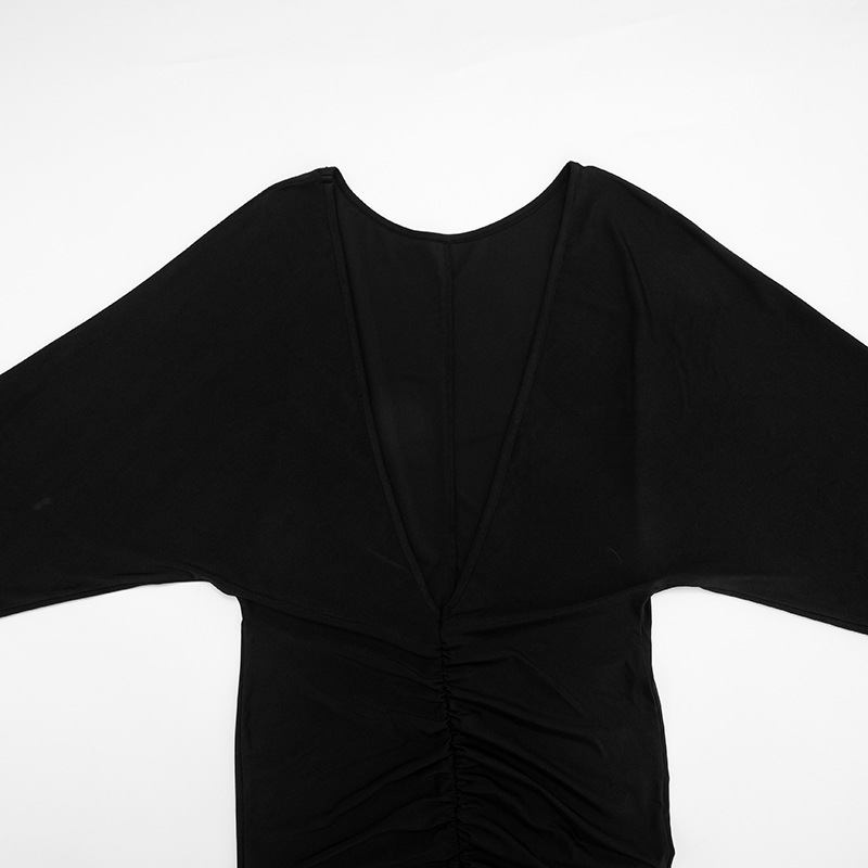 Step out in effortless elegance with this solid color long sleeve maxi dress, designed for women who want casual sophistication with a touch of sexiness. The backless design adds allure, while ruched detailing and a deep V neckline create a flattering silhouette.