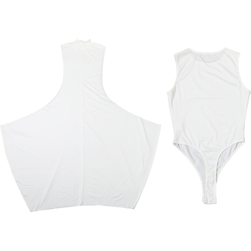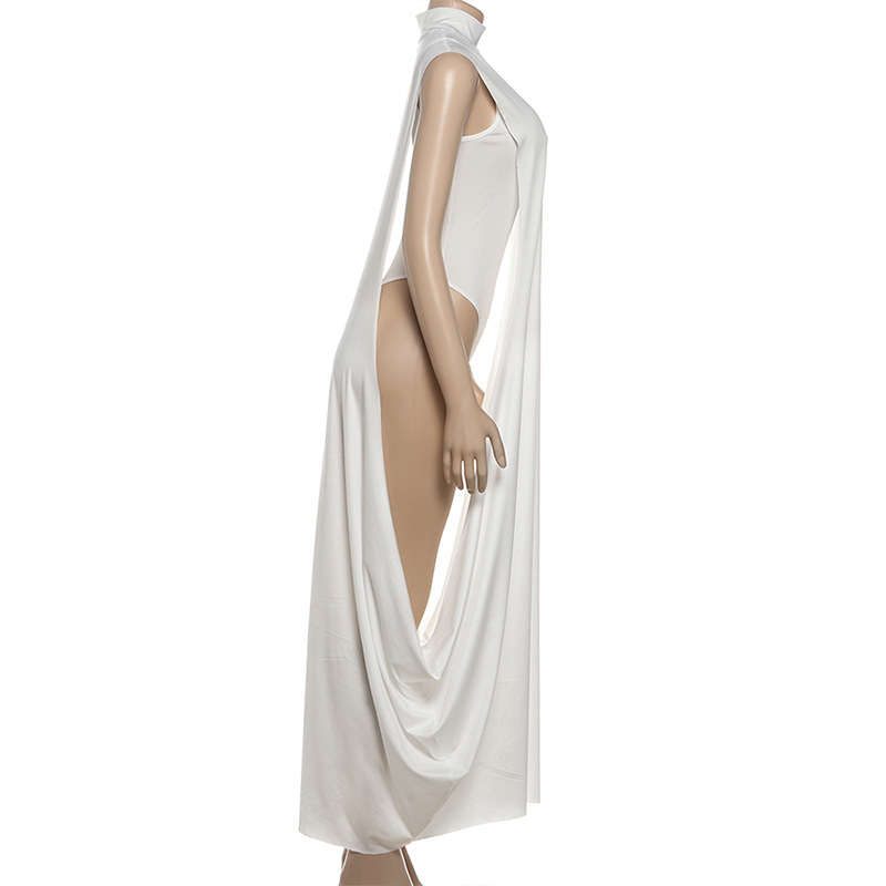 Women’s White Slim Fit Sleeveless Maxi Dress – Turtleneck A-Line Party Two-Piece Set