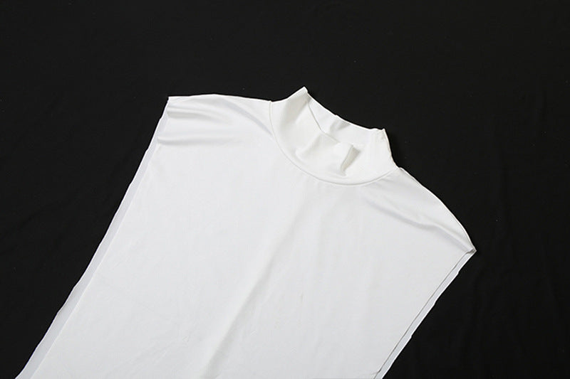 Step into sophistication and style with this white slim fit sleeveless maxi dress two-piece set. Featuring a turtleneck top and A-line maxi skirt, this ensemble combines elegance with a modern, sexy silhouette. Designed to flatter your curves, the slim fit highlights your figure while the sleeveless design keeps it chic and breezy for evening occasions.